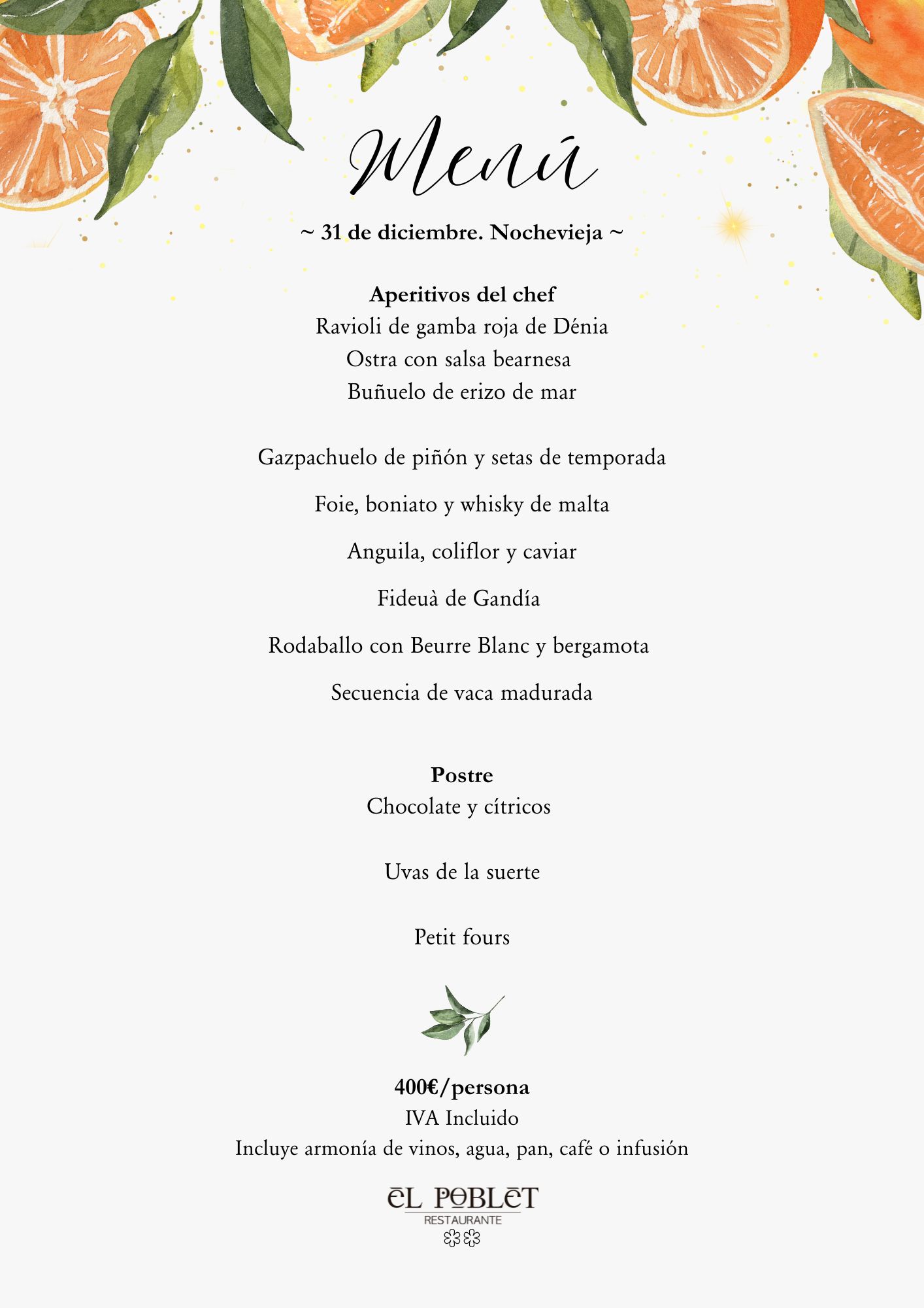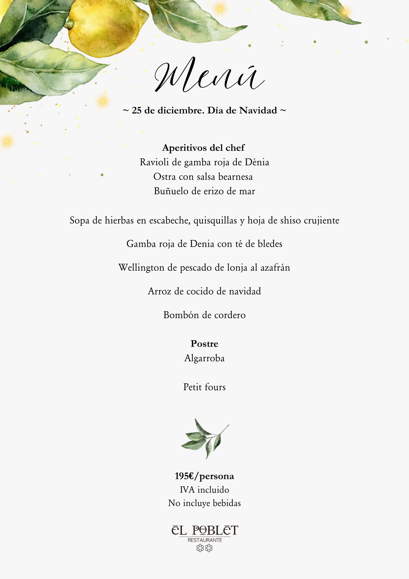 Los menús se sirven por mesa completa, excepto alergias y restricciones.